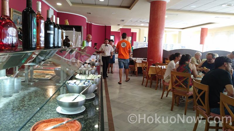ホテルのレストランの昼食時間は13.30から15.30で、夕食時間は20時から22時だった。日本人の中高年団体さん向きではない。