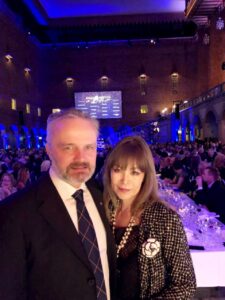 写真は、2019年11月29日、エリクソンのパーティーに出席した勤続30周年のJonas Högberg氏と邦子夫人。