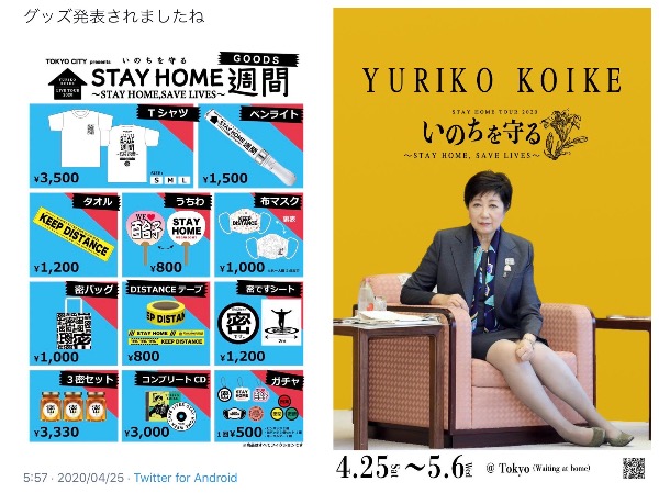 小池百合子は「ゴールデンウイーク中はステイ・ホーム、セーブ・ライフ」とか言ってキャッチフレーズを作り、自分の宣伝になるかどうかだけ考えて行動してるもんな。