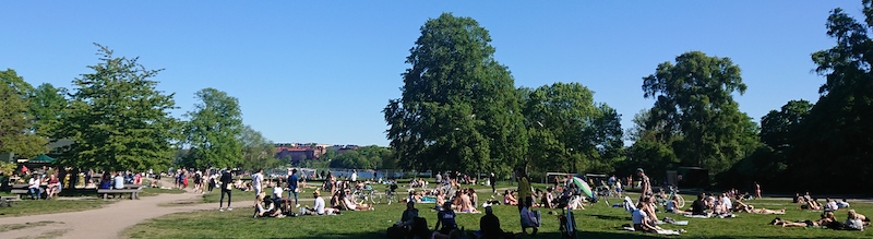 ゆるいとはいえコロナ規制中のスウェーデンでは、多くの人が在宅勤務だし、病院では面会お断りが続き、高校生以上はオンライン授業のままでそろそろ夏休みに入ろうとしている。そんな2020年5月の終わりの週末、ストックホルムの街の市庁舎の近くを通りがかったら、いつもより多いぐらいのうそのような人混みだった。