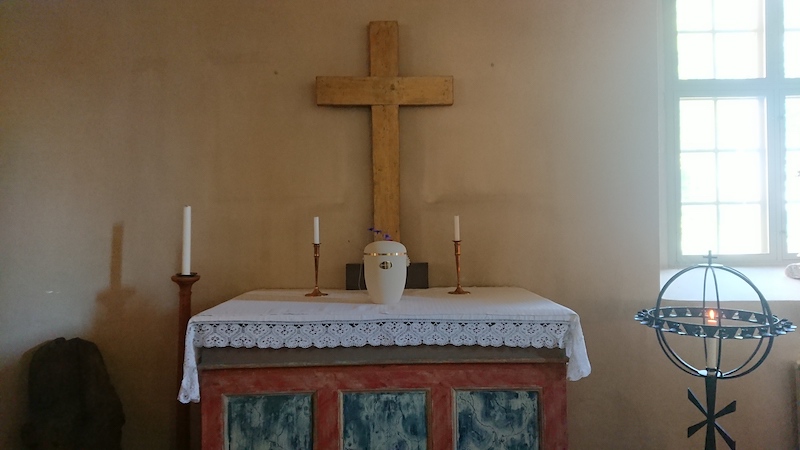 骨壺は教会の中に安置されていた