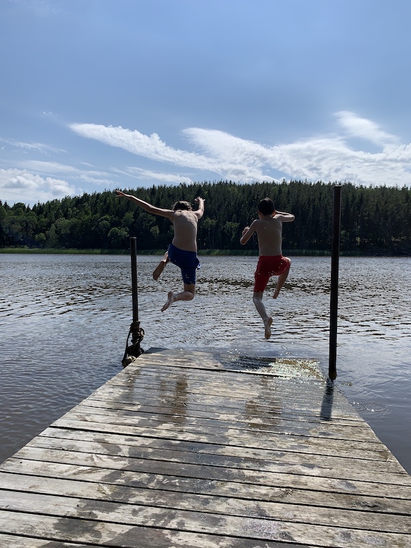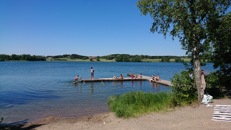 スウェーデンには、こんな感じの湖水浴場がどこにでも無数にある。水はきれいなので、泳いだあとシャワーも要らない。