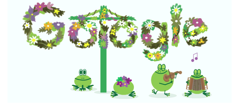 冒頭のアイキャッチ画像は、2020年夏至祭当日の6月20日、スウェーデン限定で表示されたグーグルDoodle。夏至祭ポールの周りをアニメーションでカエルが飛び跳ねていた。(出典参照)今年はコロナで祭りはなし。