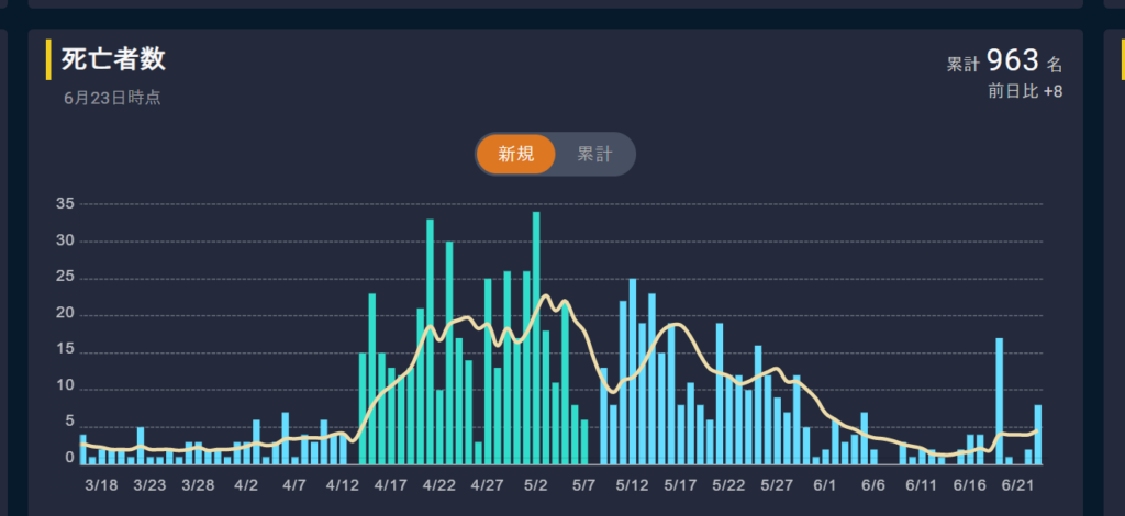 それにしてもPCR検査陽性者数がちょっと20名30名になると大騒ぎして、東京アラートまで出るのに、死者数については無頓着過ぎないか?