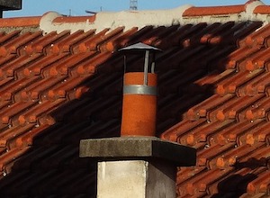 煙突は雨避けがてっぺんについているけど、これ煙はまっすぐ上にあがってきて、雨避けにあたってわきから出るのだろう。
