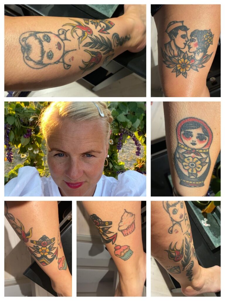 ハンナ・カールソンの腕のタトゥーは色が入っていないが、知り合いのスウェーデン人が派手な色付きタトゥーを入れているのを思い出して、このコラムのために写真を撮って送ってもらった。リナはアクティブで体育会系のお母さん。