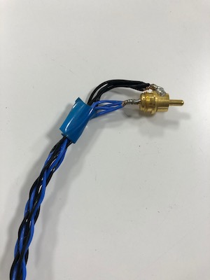 RCAプラグには真ん中棒みたいになってる部分と、それを取り囲んだ部分が接点になっていて、真ん中には青い線をハンダ付けしてある。これは普通。