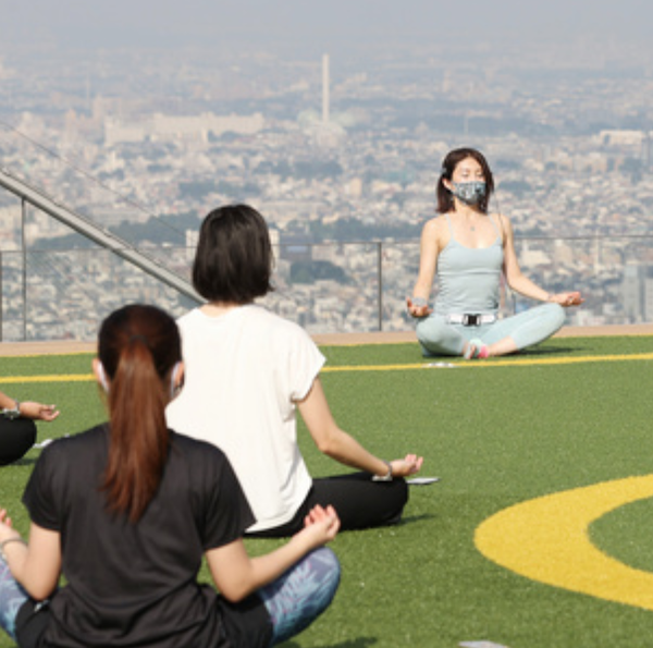 高層ビルの屋上でヨガ????♀。。。こう言う時にまでマスクする感覚は恐ろしいです〜。
