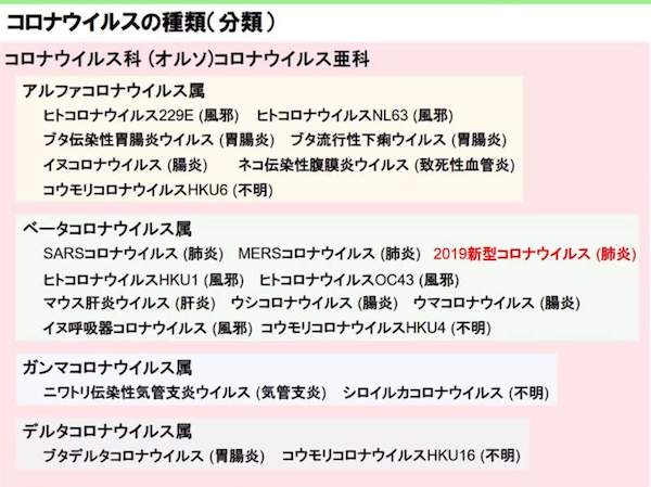 コロナウイルスはいくつかの属が存在する。
