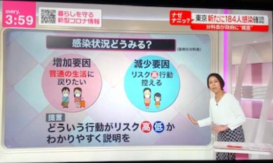 だから一度バランスが崩れると大変なことになるので、どういう行動がリスク高か低かわかりやすい説明を政府にお願いしたんだと。