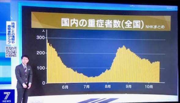 さっき言ったように「重症者がじわじわ増えている」と始まったニュースでは