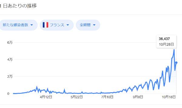 いずれにしろフランスで1日死者500人という日が出たというのは大変なことだと認めるがそんな日は長く続かない。やがて早いうちに今回の流行も治まる。