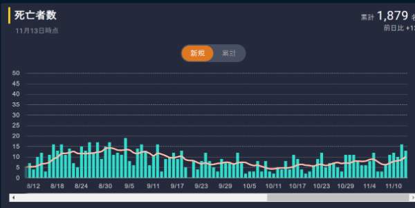そのモーニングショーの11月10日の放送で、最近のPCR陽性者(モーニングショーはあくまで感染者と言うがすべてPCR陽性者と翻訳させてもらう)の増加に伴い、政府はなにかするべきだ、それも早い方が良いと言い(発言者:玉川)、11日の放送で遂に非常事態宣言を出すべきだと僕は思う(発言者:玉川)とはっきり言い、ながーい沈黙を破りモーニングショーの非常事態宣言を出せキャンペーンが再開する方針に決定された様だ。