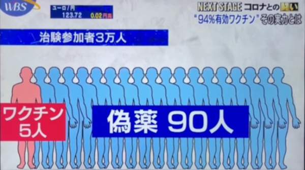 これまじめにさもさもしい図にしてニュースで解説してるんだよ。はぁーーだよ。もうマジックだよね。なんでこれが95%の有効率になるの?みんなこれで納得するんかい?