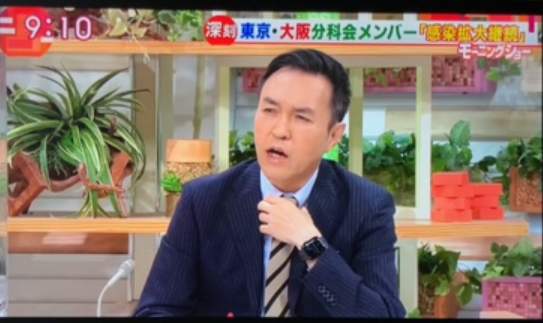 (ちなみにリモートで参加の岡田晴恵はこの発言中うんうんとずっと賛同して首をタテに振り続けていた。その他の出演者はさすがに怪訝な顔をしていた)