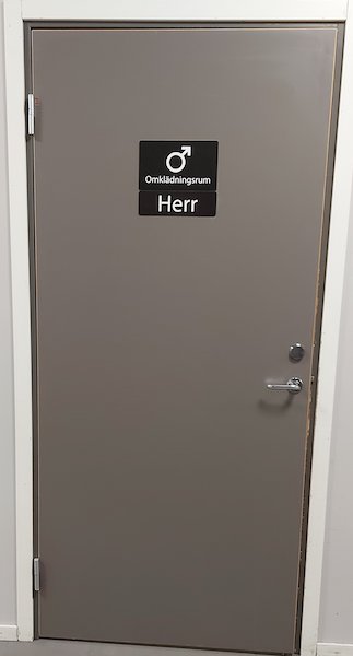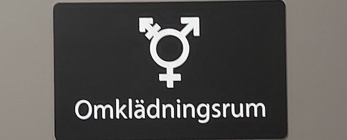 スウェーデンでは、今や当たり前に見かけるユニセックストイレや更衣室。息子の習い事が終わるのを待っている間の暇つぶしに更衣室のドアの写真を撮ってきた。これで思い出すトランスジェンダーの話題もついでに・・・。