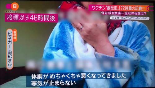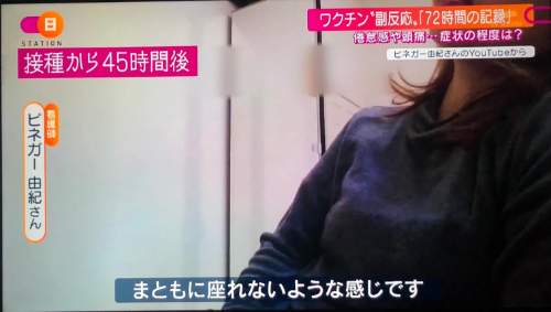 結局、由紀さんは報告されている、腕の痛み、全身の痛み、倦怠感、インフルエンザのような症状などのほとんどすべての副反応を経験することとなった。