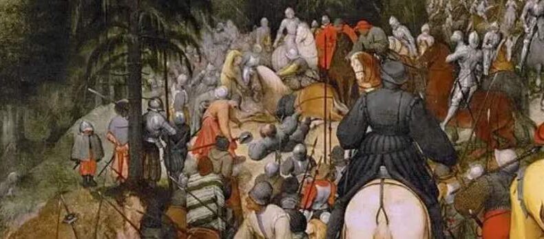 ある日のことその日もパウロはキリスト教迫害に向かおうと行列作って峠道を進んでいたら、突然カミナリがパウロを乗ってる馬ごと地面に叩きつけ、パウロはその時、キリストの「なぜ私を迫害するのか?」との声を聞いたという。その後パウロは回心してキリスト教を作り上げる方に回ったという「パウロの回心」と呼ばれる場面が今回のカバー写真だ。みんなボスがいきなり落馬したのでびっくりしてる。