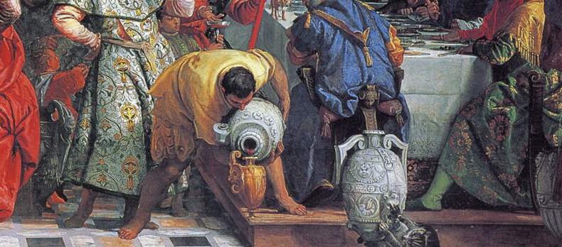 ワインの奇跡は、婚礼の宴会でぶどう酒がなくなって、イエスの母がどうしよう?とイエスに言ったらイエスはワインの壺に水を入れろと指示する。いくら酔っ払いばかりでもばれるだろと母親が心配したら、それが最高のワインになっていて、世話役が、「酔っ払ってから安物ワインでごまかすのが常だけど、最高のワインを残しておいたあんたは偉い」と言ったそうなのだ。