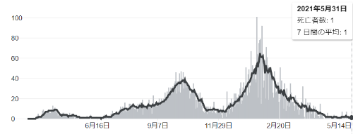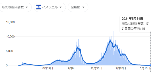 最初、日本ではワクチン打つのが1日1万人と聞いて仰天した。そんなゆっくりじゃらちがあかないよ。ところがもうすぐ1日100万人態勢にできるそうだ。そうなれば話は別だ。2ヶ月以内に死者ほぼゼロになるだろう。本当かって?本当だとも。日本よりはるかにワクチン接種が進んでいるイスラエルの例を見せよう。