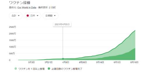 日本はワクチン接種が遅れたと言われていたが、もはや過去の話だ。すでに3160万人が少なくとも1回目の接種を完了しそれは国民の25%に達している。