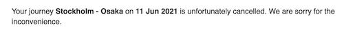 スウェーデンは6月半ばから8月半ばまで夏休み。コロナ騒動のため去年は日本への不要不急の一時帰国を控えた海外在住日本人が、今年はちらほら帰国している。ホクオも6月に帰国しようとしたのだが、予約した大阪行きの便が予約3週間後の2021/4/26にキャンセルになってしまったので断念した。