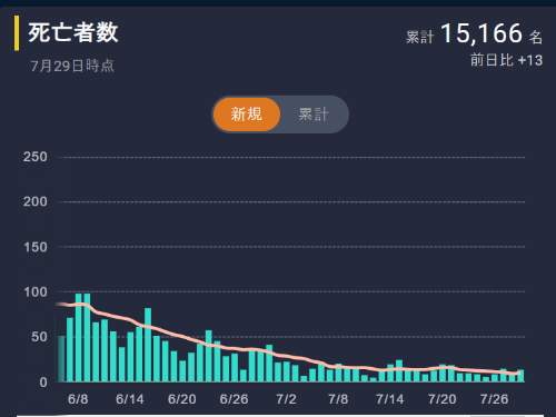 うーん、グラフ見てくれ。死者数はすでに1桁の日が多くなっていて、決して再増加する傾向はない。これはワクチン接種が進んだこと、デルタ株は確かに感染力は強いが発症力、重症化率、死亡率はこれまでと同じという理由による。(違うというなら論文見せてくれ)ここまで死亡者が少ないなら欧米のように緩和に向かって問題ない筈だ。欧米やイスラエルが規制を再び始めたとの反論があるが、それはマスクだけだ。マスクは状況によっていくら義務化しても良い。マスクで人は死なない。しかし各種規制は自殺などで人が死ぬんだ。ここまで死者数が減ったのに規制を続けるのは許されるべきでない。