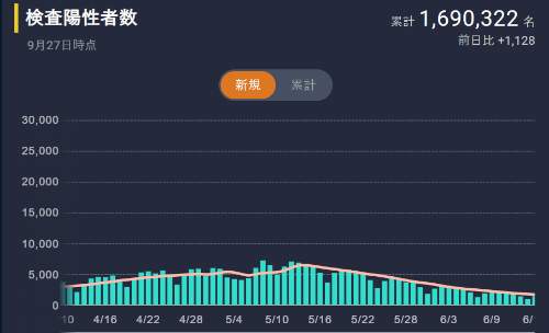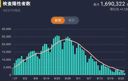つまり4波の時はワクチン効果のない世界、5波はワクチン効果のある世界。そしてこれからの未来はワクチン効果のある世界だ。だからワクチン効果のある世界ではどうなるかで考えなくてはいけない筈だ。尾身茂もテレビのコメンテーターたちもそのことをすっぽり忘れて(たぶん意図的)6波が必ず来るみたいなことを口走る。まったくばかじゃないのと私は思う。