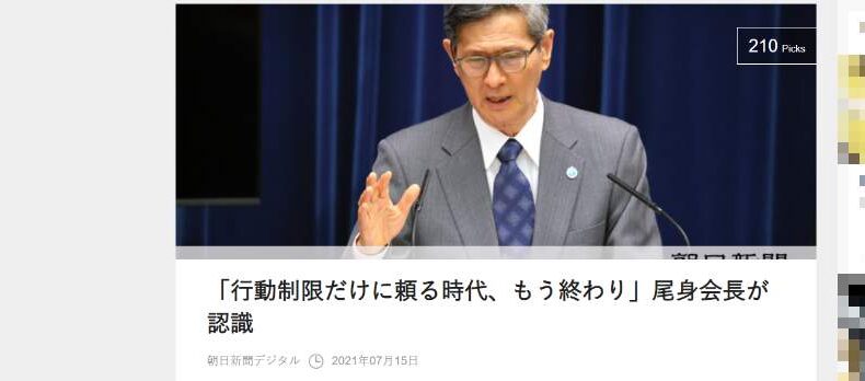 カバー写真にする写真をさがしていて尾身が「行動制限はもう終わり」と言っている記事を見つけた。(わたしゃ驚いた)