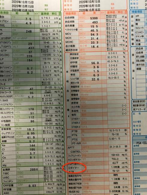D-ダイマーというのは血栓症の判定に使われる数値らしい。