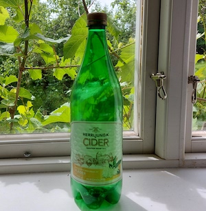 エルダーフラワーのスウェーデン語は”fläder”でシロップflädersyrup。下はエルダーフラワー味のサイダー。
