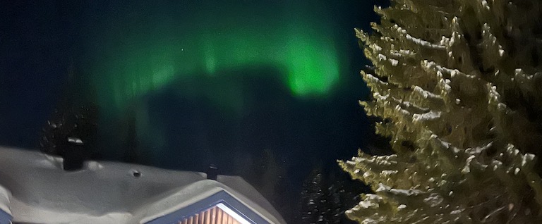 オーロラが見られる確率の高い時期は「9月中旬から10月中旬と3月中旬から4月上旬」とも言われるが、2023年3月中旬にキルナに行った知人は幸運に恵まれた。初めて見るオーロラは、光のカーテンと言われる通りに揺れて感動的だったそうだ。