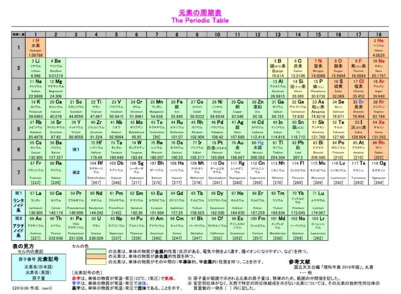 これは原子同士の化学反応というものが結局電子のやりとりで行われるわけで、その電子には軌道があり各軌道に配置される電子の数は2かけるnの二乗という法則に則っており、したがって化学反応で使われる一番外側の電子の軌道の状態が同じ元素が、周期的に現れるということによる。ざっと説明したけど、これは理解しなくて結構。