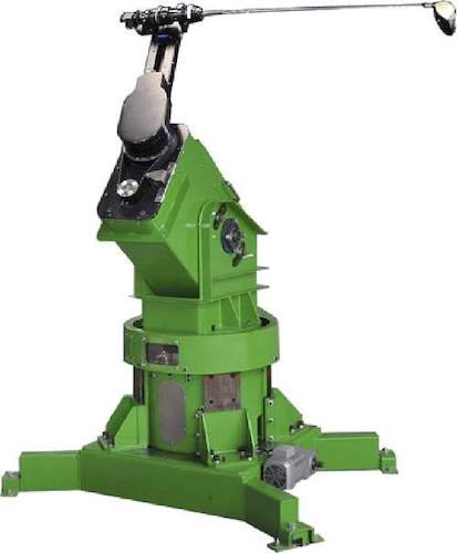 人間ではスライスしたりフックしたりするところをいとも簡単にまっすぐな球筋のショットをばんばん連発できるそうだ。人間がまっすぐな球を打つのにどんなに苦労するかを考えると、人間の努力がばかみたいに見える話だ。マシンのど太い腰と完全ボルトで固定された足を見て欲しい。まともなショットを打つためにはこのくらいしないといけないという証拠だ。